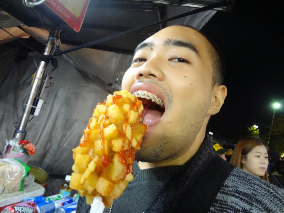 The following day, we went to Namsangol Hanok Village which is a traditional Korean village. Again, we didn’t go for guided tours and just looked around. There were games, dancing and other traditional activities you can participate in. Our main goal at Namsangol was to wear a hanbok. We had a blast pretending to be kisaengs (it’s like the Korean version of a geisha), kings, princesses, emperors, slaves, peasants or scholars. We were also lucky enough to watch a traditional Korean wedding. If I’m not mistaken, they hold weddings during the weekends at around noon. We walked further uphill and found this grey circular stone that had congratulatory messages carved on it. The huge rock was a gift from different cities around the world to Seoul for its sixth centennial anniversary. For some reason we felt so comfortable there, and kept saying that that stone attracted positive energy. So we stayed there for a while, laughed and talked about how our trip was going so far. We went our separate ways after: I went with Matt to Dongdaemun and enjoyed a potato corn dog; the rest to Yongsan to buy gadgets.