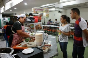 Our first order of business when we arrived was to eat. We found this cafeteria-type food court near our hotel. The vendors and customers knew little to no English so we didn’t bother asking what kinds of food were available. We just based our orders on what they looked and smelled like, and copied whatever the locals did.